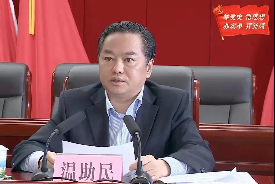 温助民强调,要深入领会习近平总书记关于党史学习教育的重要论述、重要指示精神,在学而思、学而悟、学而行上持续努力、久久为功,巩固拓展党史学习教育成果,推动党史学习教育常态化长效化,以强烈的历史主动精神奋进新征程、建功新时代,踏踏实实走好新的赶考之路。一要在坚定捍卫“两个确立”、坚决做到“两个维护”上下真功见实效。要把开展党史学习教育作为重大政治任务,不断提高政治判断力、政治领悟力、政治执行力,忠诚拥护“两个确立”、坚定践行“两个维护”。二要在以史为鉴开创未来、推动梅县老区苏区加快振兴共同富裕上下真功见实效。大力发展实体经济、总部经济、城市经济,做大经济规模、做大经济总量、做大经济蛋糕,为梅县老区苏区加快振兴、共同富裕奠定坚实基础。三要在坚持人民至上、增进民生福祉上下真功见实效。要把以人民为中心的发展思想落实到行动中,持续做好“我为群众办实事”实践活动,解决好群众关心的实际问题,以实际行动践行初心使命。四要在勇于自我革命、全面从严治党上下真功见实效。要强化管党治党主体责任,全面贯彻新时代党的组织路线,不断推动全面从严治党向纵深发展。五要在全面总结拓展经验、推动党史学习教育常态化长效化上下真功见实效。要认真总结这次党史学习教育的成功经验,建立健全党史学习教育常态化、长效化机制,真正把党史学习教育融入日常、抓在经常。